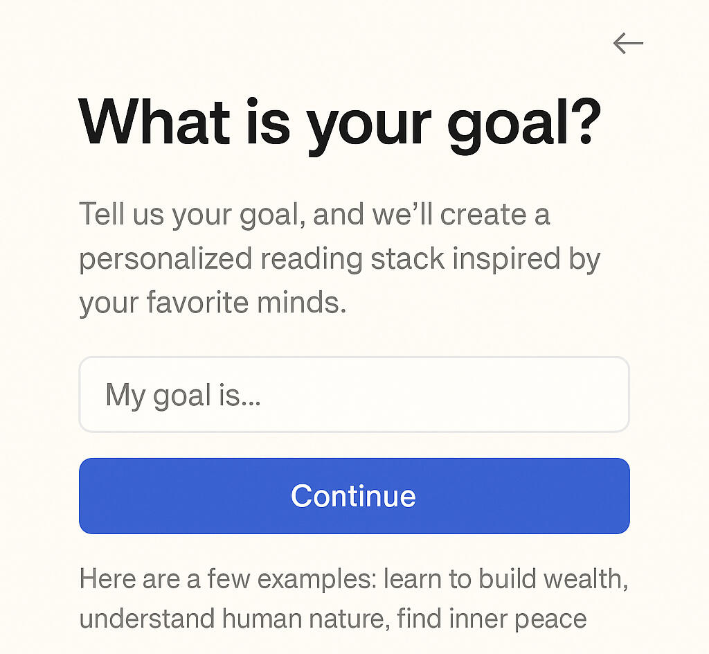Curated reading lists from founders, thinkers, and creators. Personalized to your goals. Powered by AI.